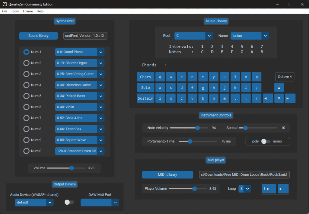 QwertyZen Community Edition is a free PC application that turns your computer into a versatile and intuitive musical instrument.